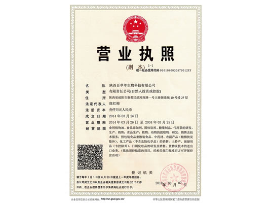 陜西百草萃生物科技有限公司,位于陜西省咸陽市秦都區(qū)濱河西路1號大秦御港城,公司成立于1996年,主要從事天然植物種植、研發(fā)、生產(chǎn)、加工、銷售為一體的高科技企業(yè)。主營醫(yī)藥原料、保健品原料、化妝品原料,精細(xì)化工原料。公司致力于人類健康保護(hù)事業(yè)“ 以科技為動力,以質(zhì)量求生存” 的本質(zhì),依托陜西高新科技技術(shù)人才和科研優(yōu)勢,已形成多學(xué)科、全方位、高層次的技術(shù)管理精英團隊。充分利用秦巴山區(qū)的天然藥物資源,歷經(jīng)多年發(fā)展為打造百草萃生物品牌奠定了基礎(chǔ)。